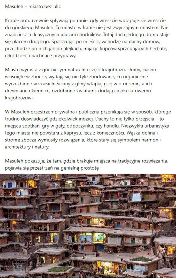 Opowieści o architekturze/krajobrazach/zjawiskach odległych z moich podróży, które regularnie publikuję na LinkedInie: